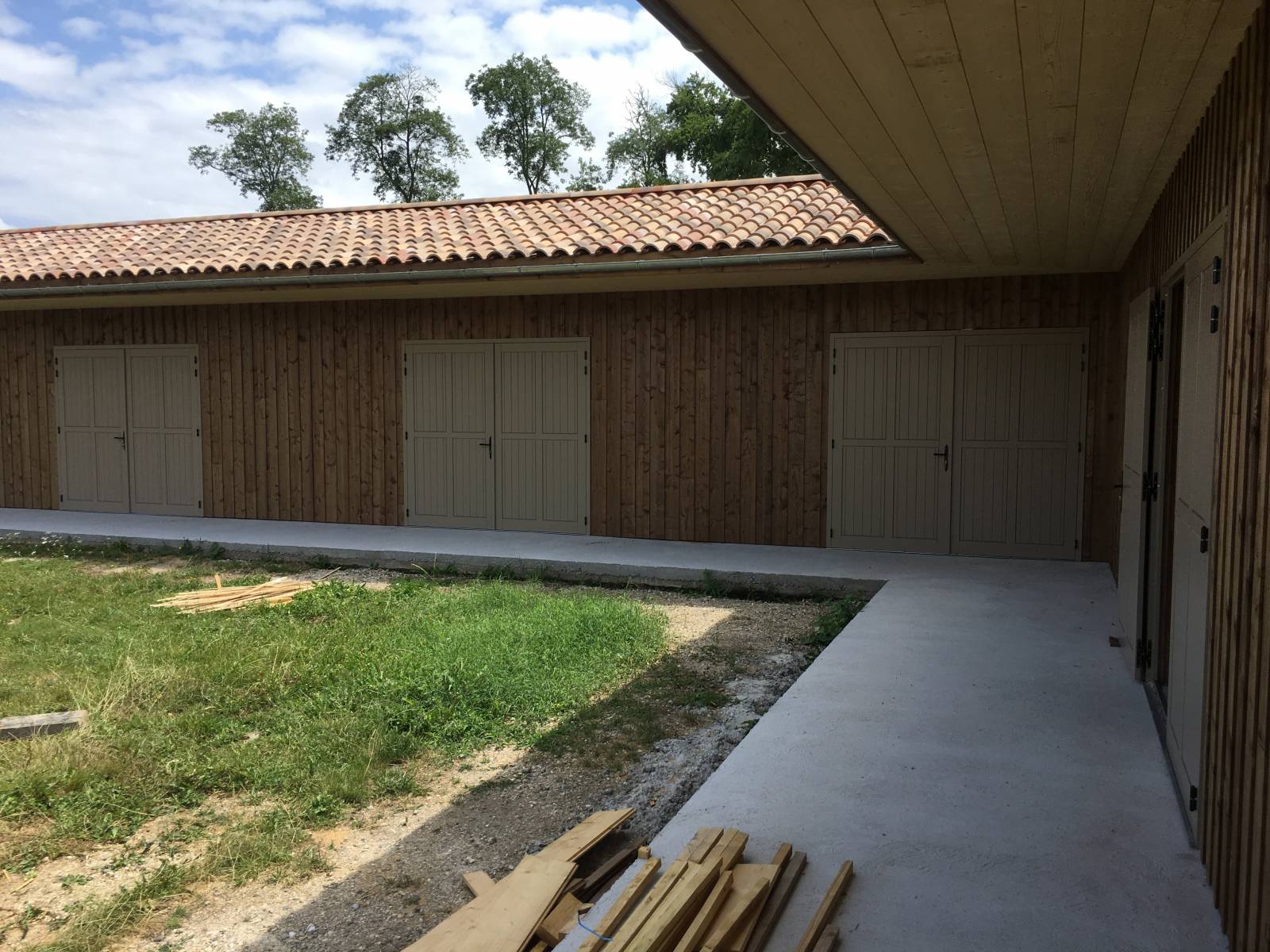 Tendance Fenêtres SARL situé à Mazères à proximité de Langon, vous présente un de nos chantiers où nous avons fourni et posé 5 portes de garage en bois à cadre près de Bazas 33430.