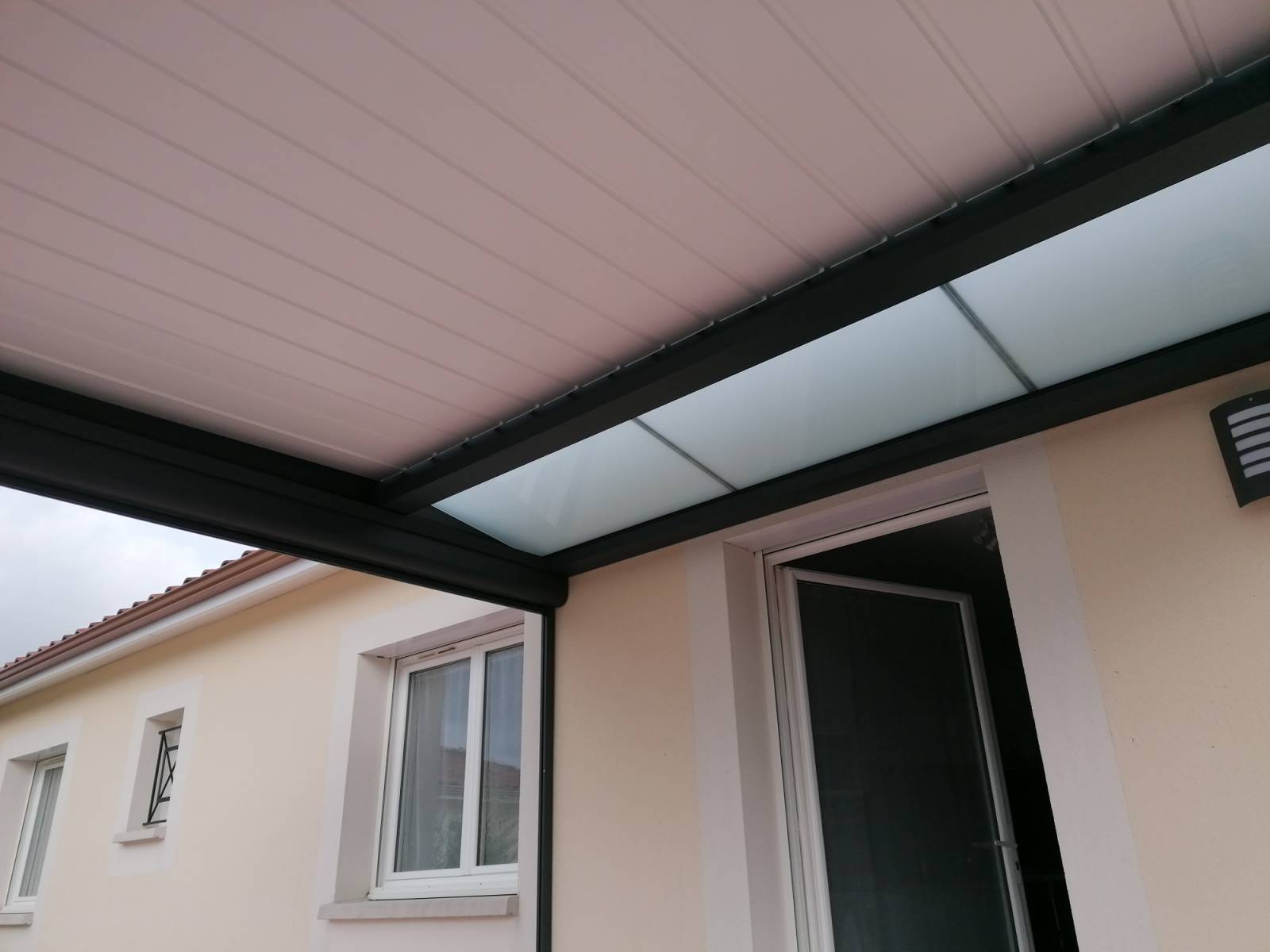 Installation d’une pergola bioclimatique avec puit de lumière et stores 3 côtés à Toulenne près de Langon 33210