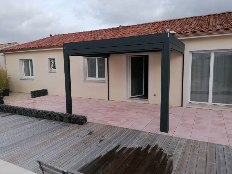 Installation d’une pergola bioclimatique avec des lames orientables en aluminium à Toulenne près de Langon 33210.