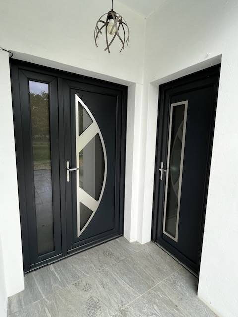 Nous avons remplacé 2 portes d’entrée en bois par 2 portes d’entrée en PVC de la gamme CASTES Performance – Pack Design avec :