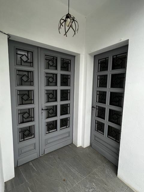 La porte d’entrée modèle GOYA 3G est en 2 vantaux tiercé en PVC Gris 7016 intérieur et extérieur.