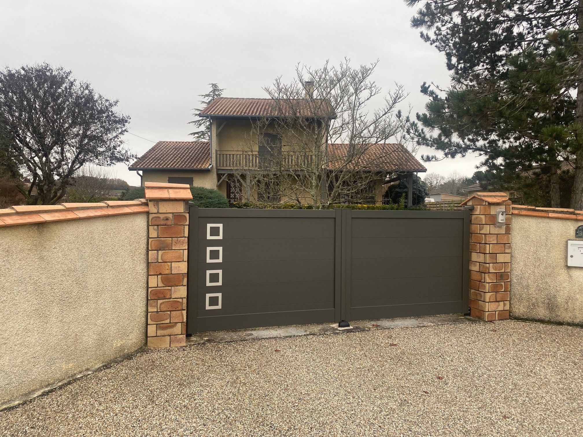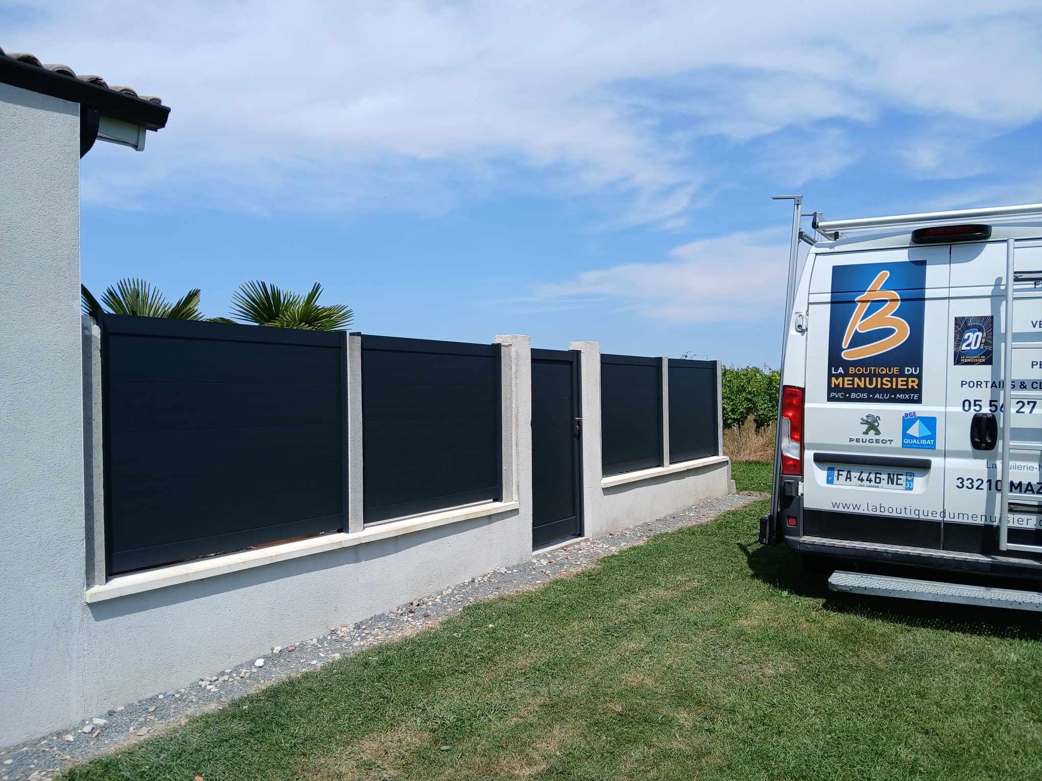 Réalisation Clôture et Portail coulissant en 4m en aluminium gris anthracite à Toulenne près de Langon 33210